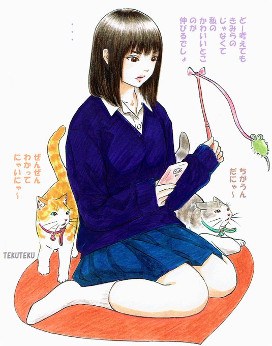 ながら女子😑「フォロワーの数もっとがーっと1万人くらいがーっと増えないかな」 にゃんず🐱「にゃらにゃがらじゃにゃくもっとちゃんとじゃらしてにゃんらのかわいいとこをみんにゃにみせにゃきゃだにゃ~」 #目指せフォロワー5000人 #フォローミー #オリジナルイラスト