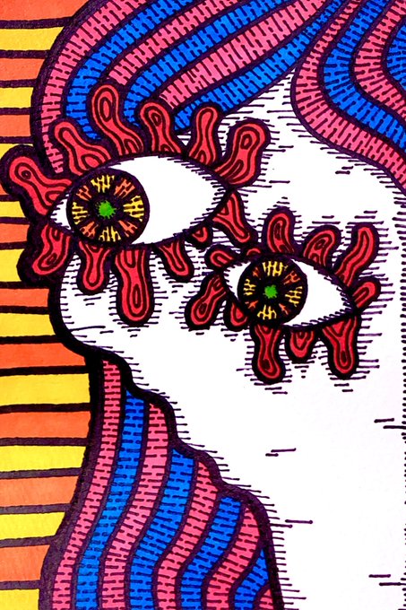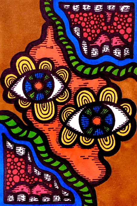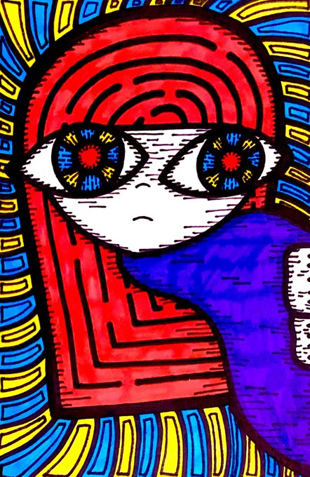 たしの目玉。真ん中には。。。よーく見て見て? #イラスト好きさんと繋がりたい #目玉 #絵描きさんとつながりたい #顔彩 #colorful #絵柄が好みっていう人にフォローされたい #イラスト #今月描いた絵を晒そう