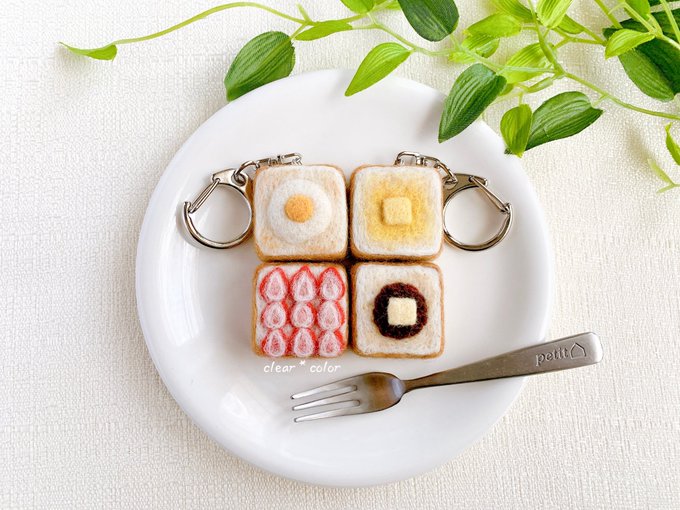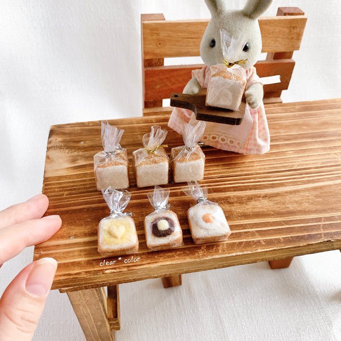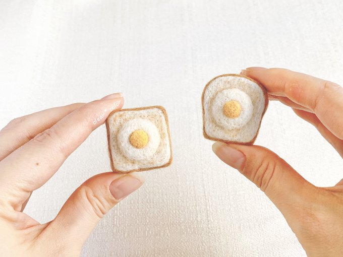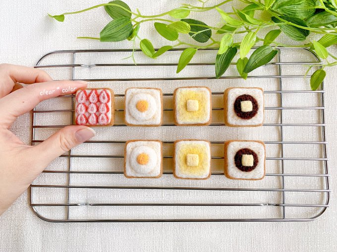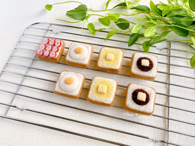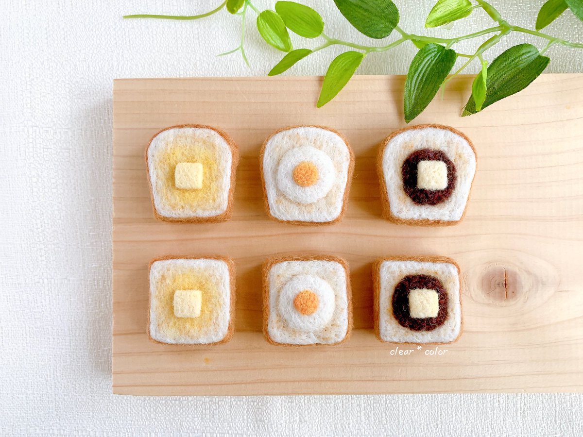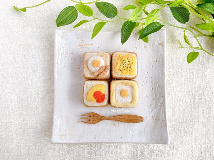 予定通りこの後21時からminneさんにて販売します。もしご縁がありましたら、よろしくお願い致します! minne.com/@clearxcolor #羊毛フェルト #ミニチュア #ハンドメイド #食パン #トースト #目玉焼きトースト #あんこバタートースト #バタートースト #インテリア #シルバニア #minne #minne_new