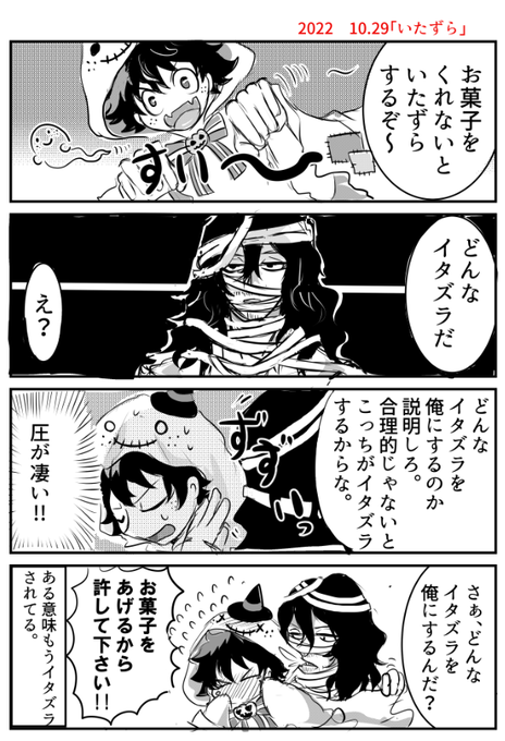 久しぶりに参加します(安定の遅刻) #相出版深夜の創作60分一本勝負 お題「いたずら」 爆発を食らう姿を想像して吹き出しちゃうマイ→振り返った先生がマイと弟子を心配してついてきたオルに箱ぶん投げ→出もグルかとガックリする先生に真っ赤な顔で「ここは嘘じゃないんです」って指差して無事結婚←