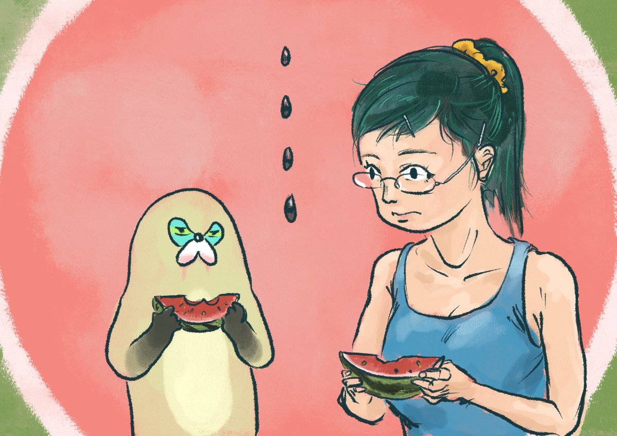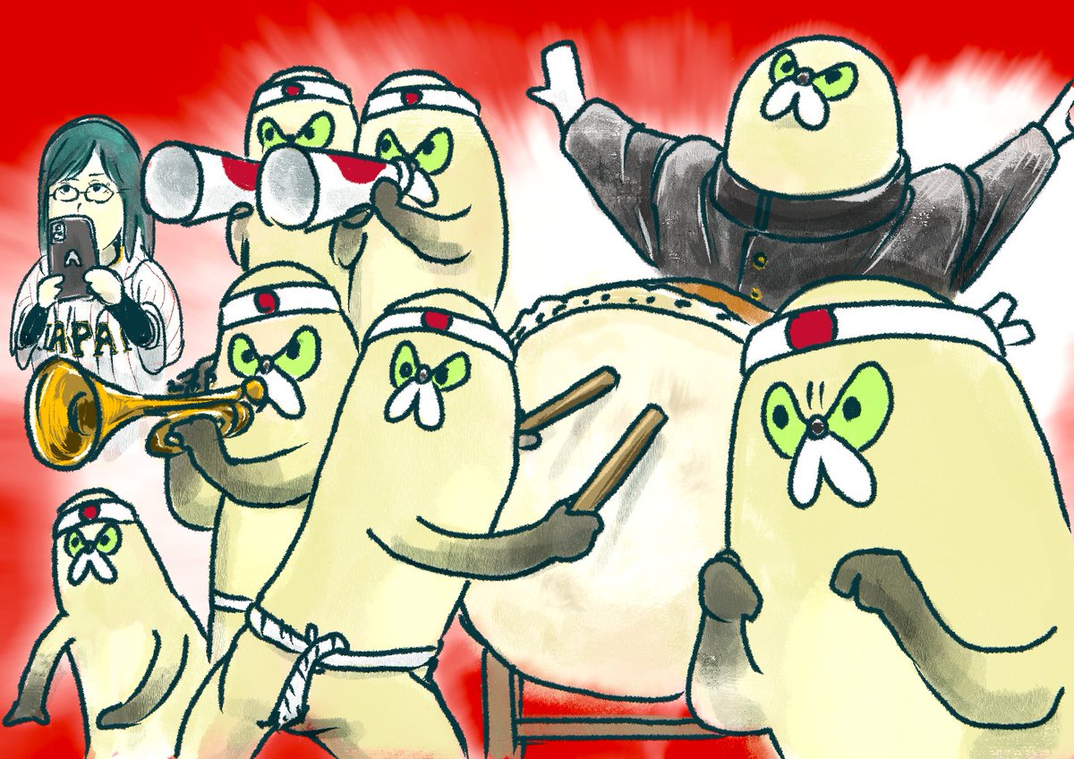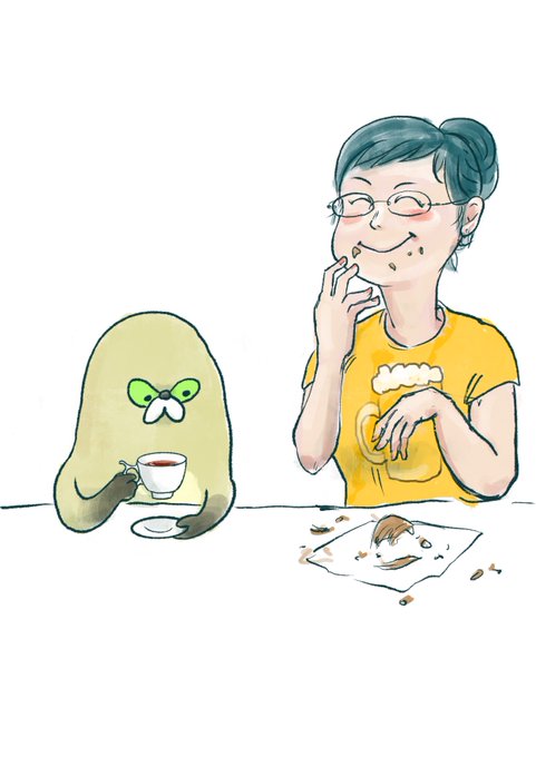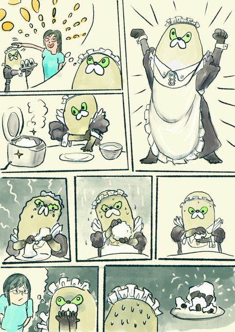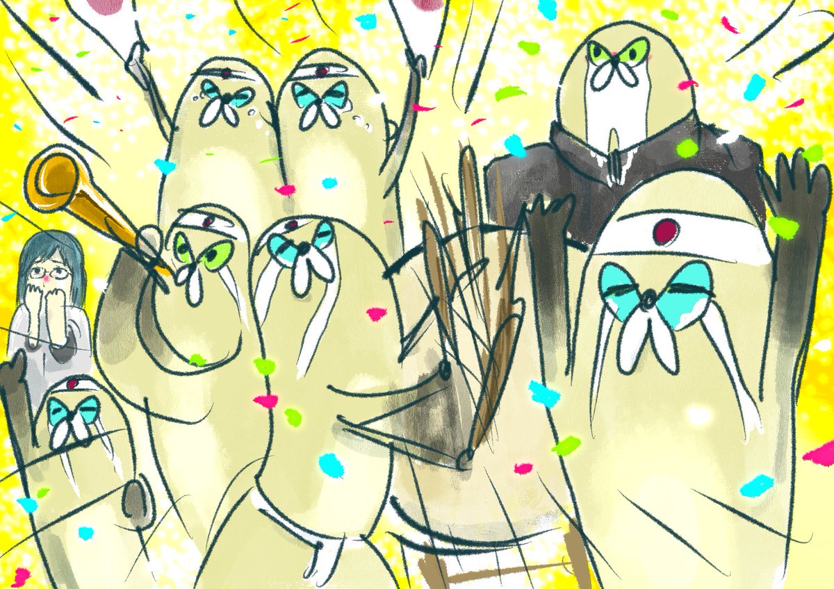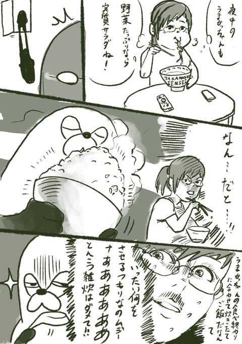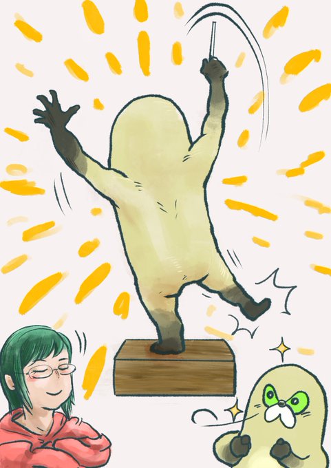 いかにしてムジーナは三角おむすびを握れるようになったのかのプロローグです。 (塗り残しがあったので再投稿) #ムジーナ #相棒ちゃん twitter.com/honen1954/stat…