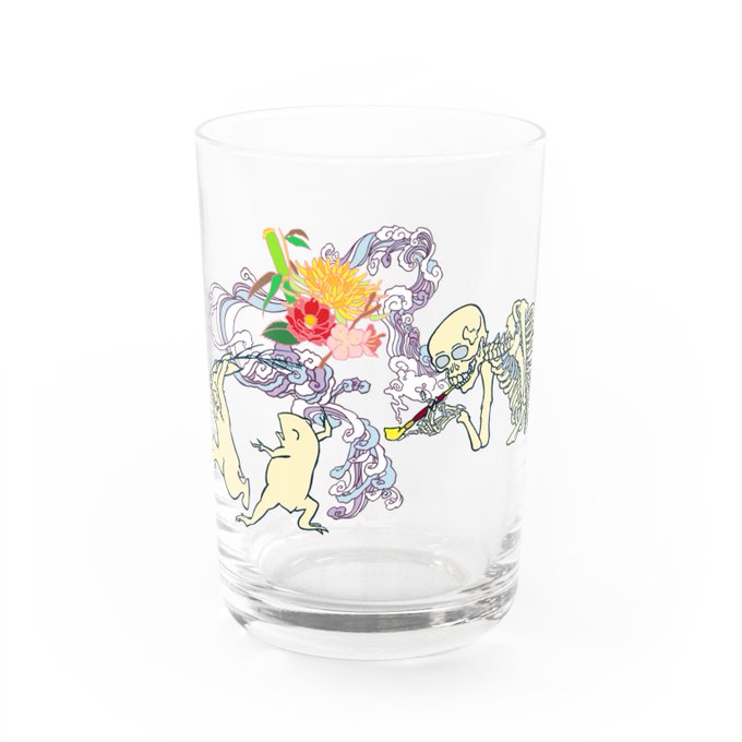 📢#suzuriで販売中 👑新作👑 #鳥獣戯画 と #相馬の古内裏 を 題材にした和風アイテム 🐰🐸💀 クリア素材と相性がいい 華やかデザインです🌸 2023年のおともにぜひ✨ Tシャツ等も販売中💕 ▼【ソイヤッ!!】グラス suzuri.jp/eyes_illust/12… @suzurijp #日本画 #浮世絵 #イラスト #和風イラスト