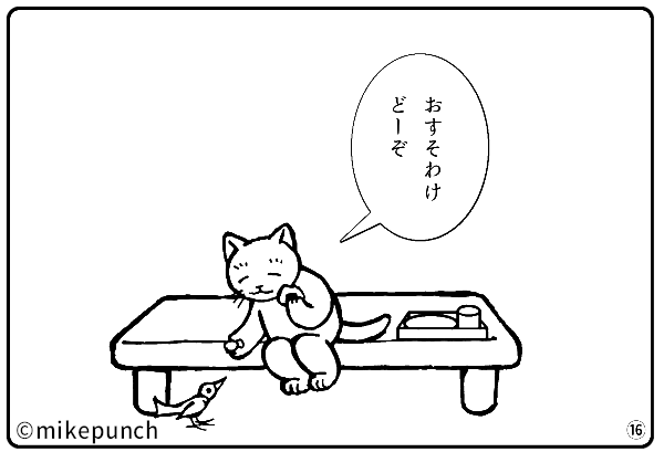 おにぎり猫のものがたり 第十話 いつものお客さま note.com/mikepunch/n/nb… mikepunch.net/onigirinekosta… いつもはおにぎりをお持ち帰りになる常連のお客さま。 今日は「ベンチで食べたいの」と仰います。 #おにぎり猫のものがたり #看取り #自分をもてなす #漫画が読めるハッシュタグ #おにぎりの日