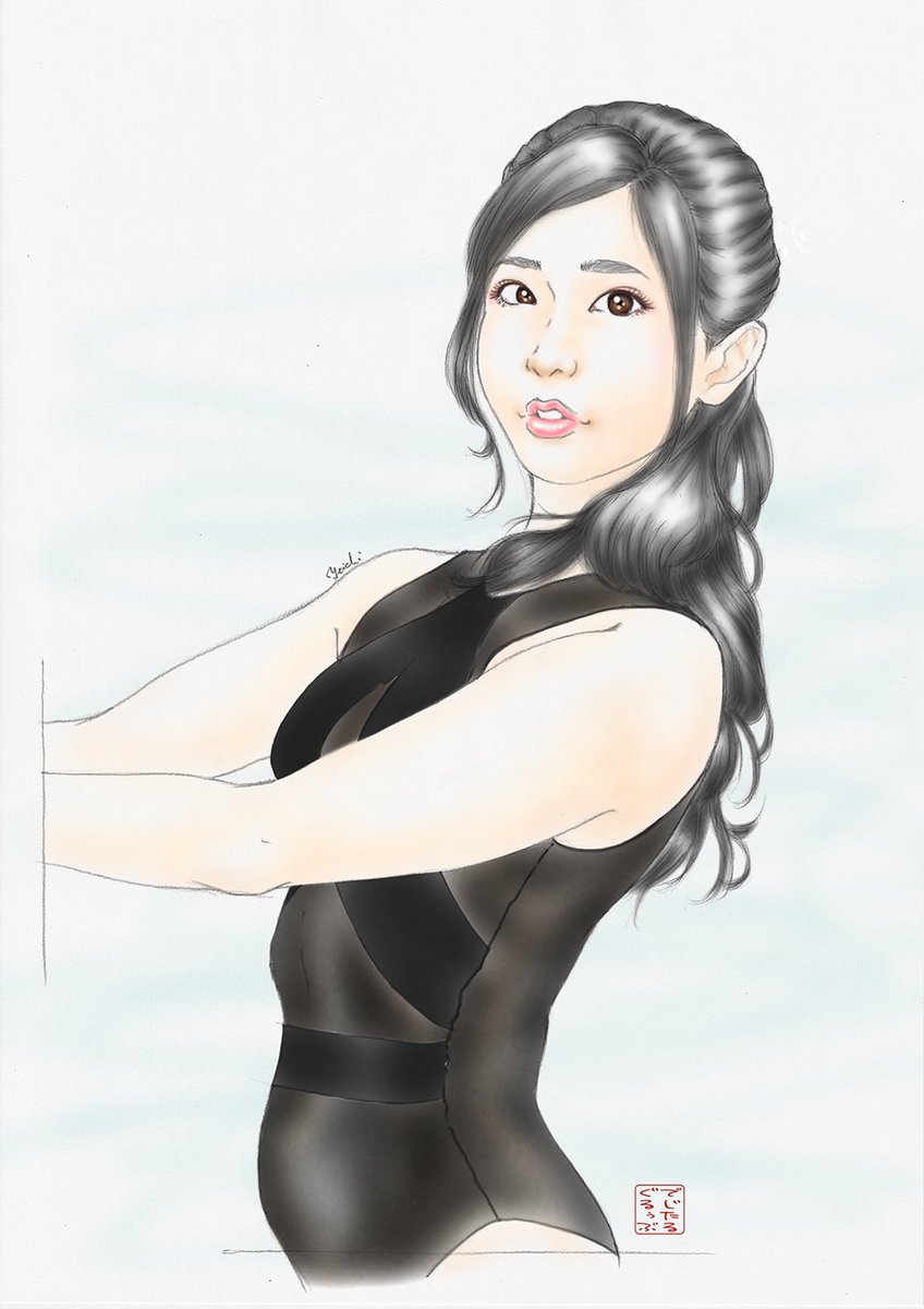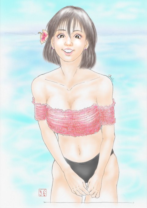 #過去絵を投げて絵を描いた気になろうキャンペーン #絵描きさんと繋がりたい #みんなで楽しむTwitter展覧会 #のん #のん絵 #能年玲奈 #似顔絵 #art #fanart #drawing #procreate #真冬の水着テロ 自分の絵では劇レアな水着ショットです。