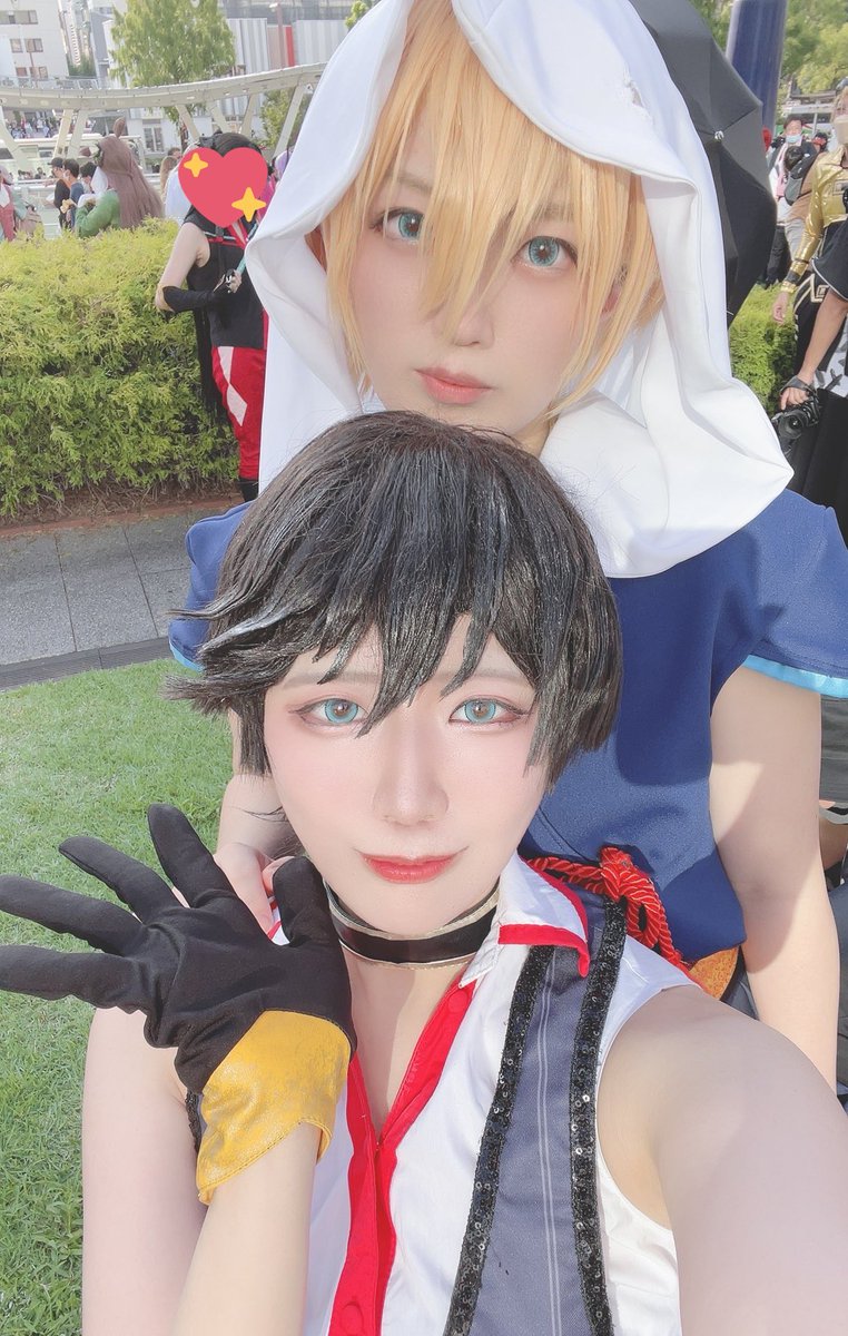 こんばんは。 オアシス公演千秋楽ありがとうございました。 感想等は #真剣お遊戯祭2022 で教えてくださいね! このメンツでまた出陣したいですね^ ^ 写真は兼さんと♪ #コスサミ2022
