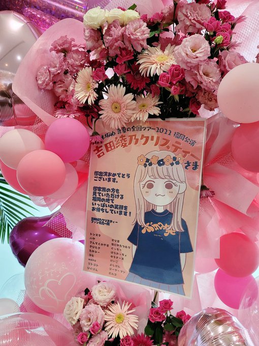 吉田綾乃クリスティーちゃんの祝花に添えるイラスト、九州は地元ということで別バージョンを描かせていただきました! とても素敵なお花でした💐💐 ありがとうございました! #真夏の全国ツアー2022