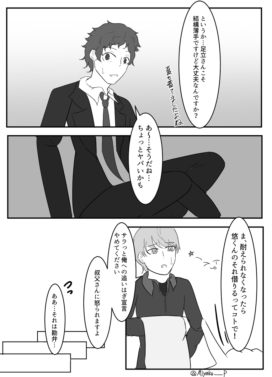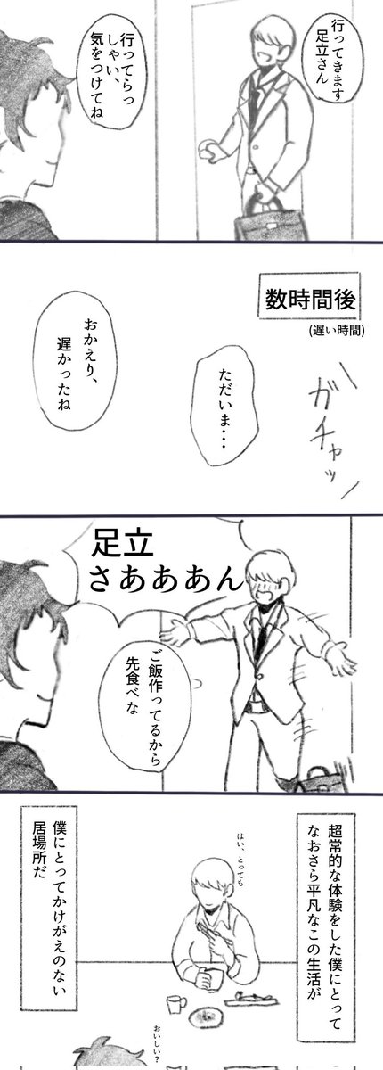 「じゃあ、気をつけて帰りなよ」 「はい、足立さんご馳走様でした」 今日がキミと過ごす最後の日になるのかな 最近そんなことばかり考える #真夜中の足主ワンドロワンライ @midnight_AxH1dw お題 キミと過ごす最後の日