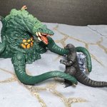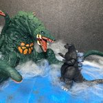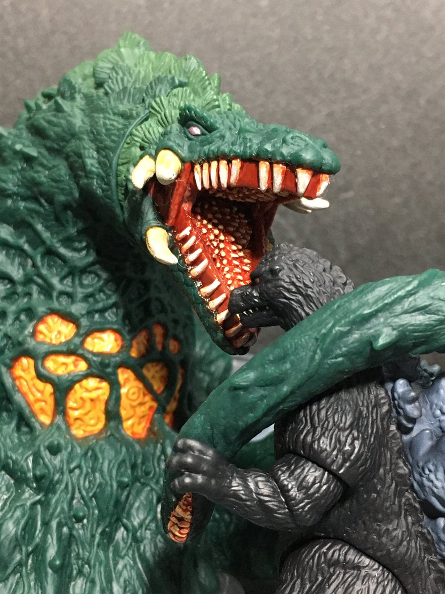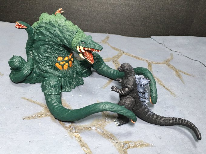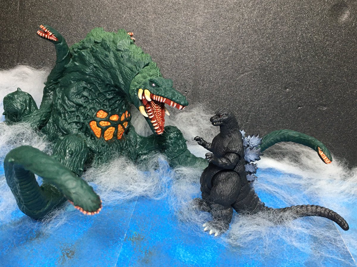 #おもちゃ撮影会 お題『加工無しでスマホ撮影』 スマホ加工しなくても羊毛フェルトで水しぶきを再現できるよ!←うちは省スペース優先だから #ゴジラVSビオランテ 再現はモンアツではなくムビモン&真撃大全なのだ😄 #ゴジラ #Godzilla #ビオランテ #ソフビ #ムービーモンスターシリーズ #真撃大全