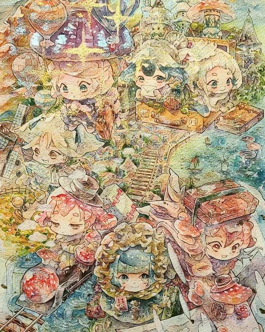 旅するキノコ👜🛩 Mushroom traveling🚂🍄 #アクリル絵の具 #創作 #キノコ #真暗森のキノコ姫 #mushroom #Illustrator #Twitter instagr.am/p/CcaE1f1PtAy/