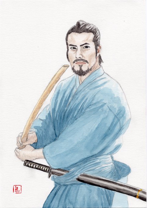 #ブレット・トレイン #真田広之 さん演じるエルダーさんを描いてみました✨☺️ 水墨画のような空気を纏いながら、壮絶な立ち回りが超絶カッチョイイッ😆 米原駅といい立花といい、義詮さんを救うため近江の道誉さん宅から敵陣に乗り込む尊氏さん♪をイメージしてしまうのは私だけでしょうか😅 #太平記