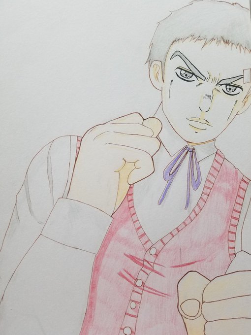#ジョジョの奇妙な冒険 #ペルソナ3 #真田明彦 #二次創作 #イラスト #アナログイラスト #イラスト好きな人と繋がりたい #絵描きさんと繋がりたい ペルソナキャラをジョジョ顔っぽく描いてみました🍀