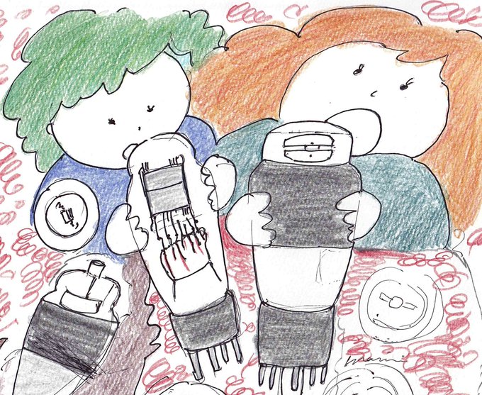 真空管ブラザーズ🎼 長男:三極ゼンオンプン(繊細な囁きが得意) 次男:ビームシブオンプン(明るく元気) 長女:多極ソリスティーン(なかなかの自分勝手) 次女:整流ノスタルジーン(みんなをまとめるしっかり者) #真空管 #illustration #イラスト #キャラクターイメージ #アナログ #オーディオ twitter.com/MarimiMorito…