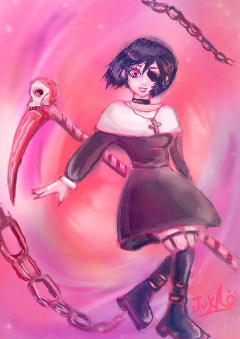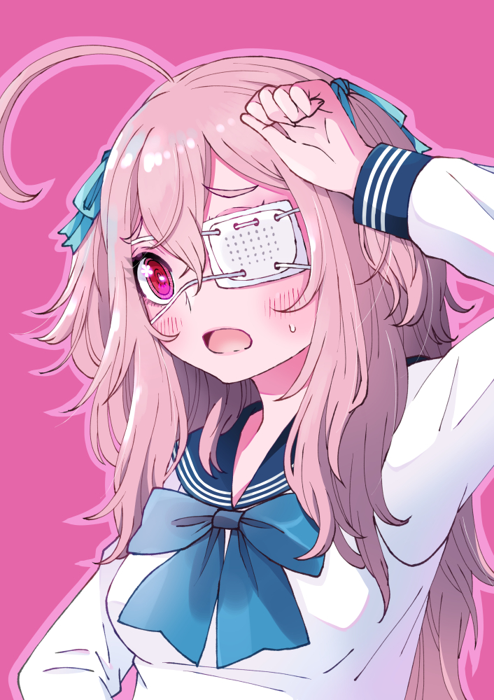 今日のpixivでのお題「眼帯」 「あっれ~? 左側が全然見えんっちゃけど~」 #眼帯 #アホの子 #絵描きさんとつながりたい #絵描きさんと繋がりたい #絵柄が好みって人にフォローされたい