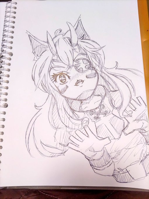 おちかれさま~ 今回はこんな感じ 髪の毛をイロイロ弄ってみました ∪・ω・∪ 一寸は今風?になれてかな? 眼帯ちゃんってなんかそそられ るのです #花maruの絵 #ケモミミ #角 #オリジナルキャラクター #眼帯 #アナログ絵 #ボールペン画 #絵柄が好みって人がいたらいいなぁ