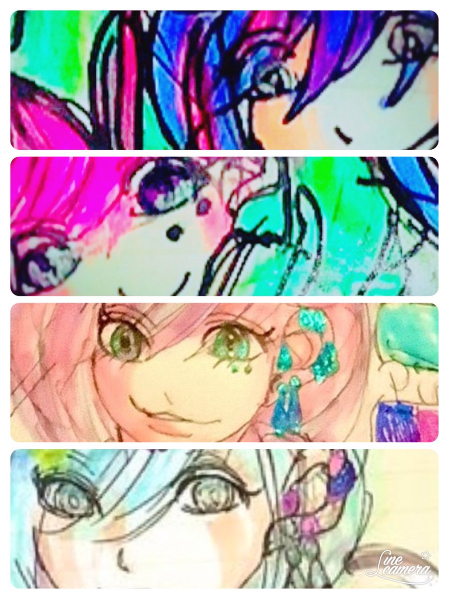 月下さん🌙緋色さん🌹瞳の色出来た🌟✨ コピック+ミルキーペンをチョコっとで 大丈夫でした🙆♀️♡ 絵柄的にピカピカしすぎたら合わないから キラキラ抑えめにしました✨ あとはラテンな緋色さん🌹🌹🌹🌹🌹🌹🤣 #瞳の色 #絵描きさんと繋がりたい #一次創作