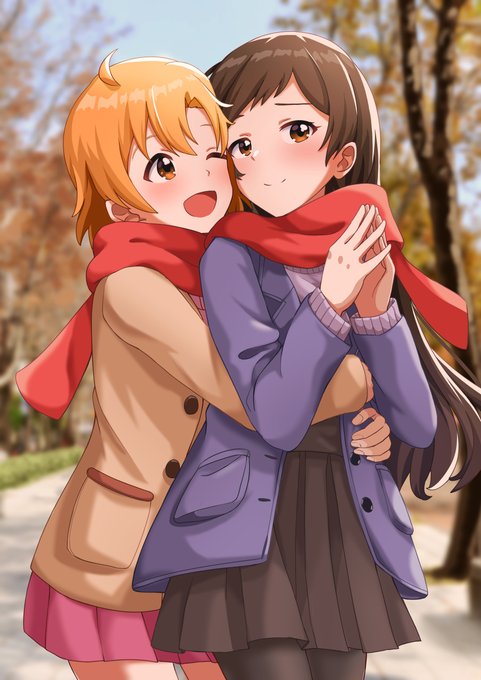 志保醬誕生日おめでとう!!!!🎂 可奈:哇!志保保生日快樂!😊來,這條圍巾是生日禮物喔!以後也請多多指教喔~嗚哇!今天真的好冷喔,我們趕快來圍圍巾吧!!(套上圍巾❤) 志保:謝謝祝福,真是的~這樣會很難走路的吧 (不過...好暖和💜🤎) #北沢志保 #矢吹可奈 #北沢志保生誕祭2023 #北沢志保誕生祭2023