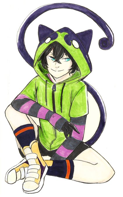 The next one on my #SixFanartsChallenge is the birthday cat boy Miya! 😸💚💜 #知念実也 #SK8THEINFINITY #MIYASK8 #SixFanarts @ApoyaAlArtista @ArtePorDoquier_