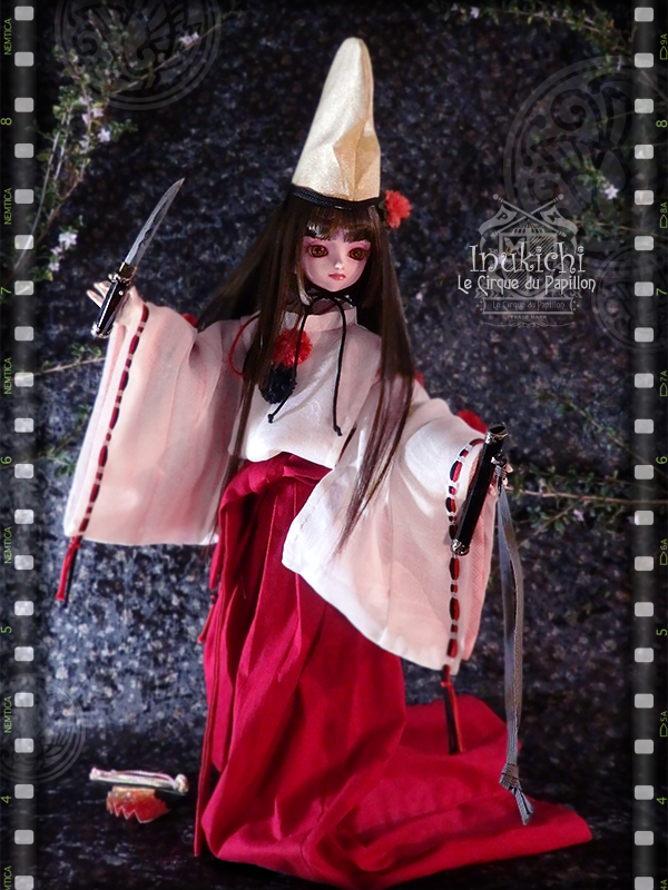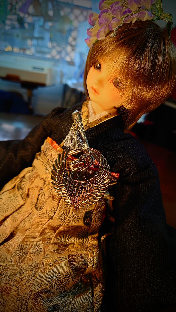 #今夜のドール撮影120分一本勝負 お題【 いせいそう】 [過去][既出]trico07.blog105.fc2.com/blog-entry-607… 狩衣を思い切り着崩してみる #handmade #miniature #superdollfie #日本刀 #短刀 #御守刀 #銘犬吉