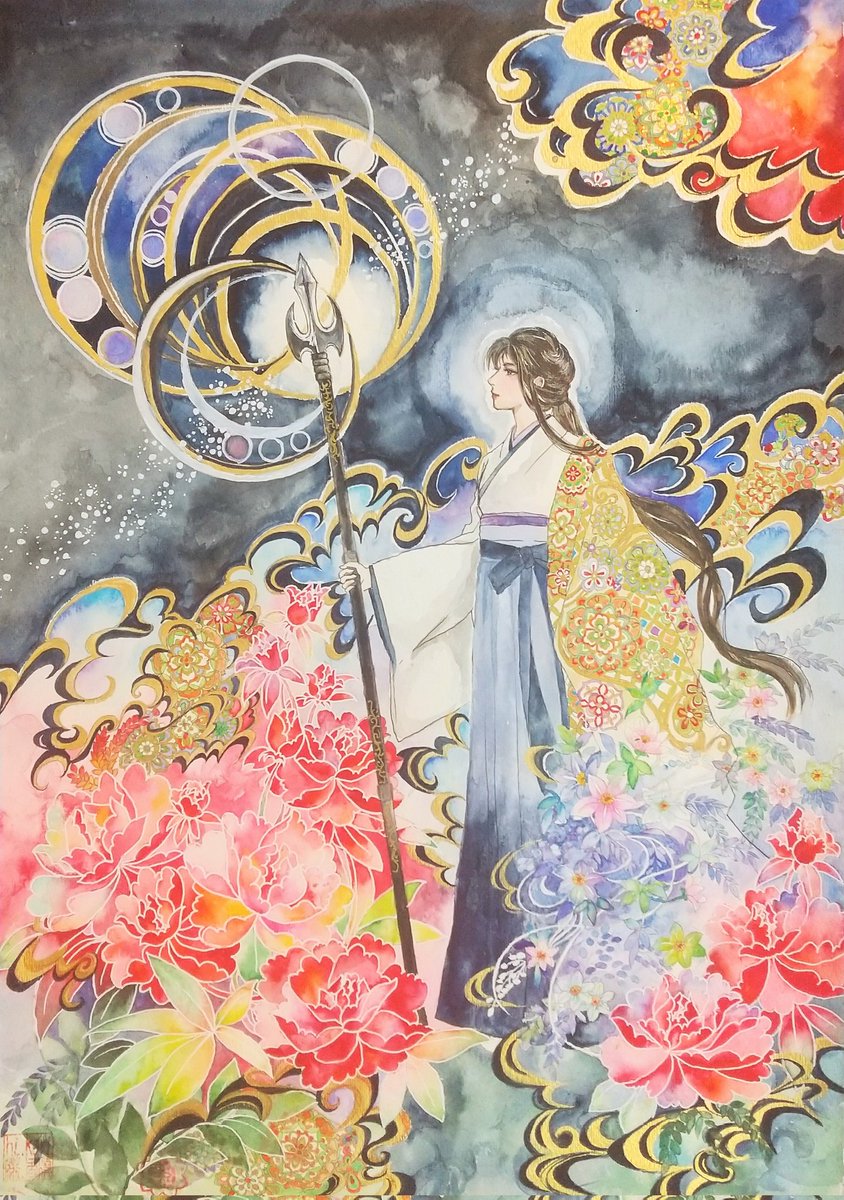 "絢爛に 豪華にそして 涼やかに 指に気を溜め 地に足つけよ" #illustrationart #watercolour #artwork #水彩イラスト #絵描きさんと繫がりたい #illustration #短歌 #水彩画
