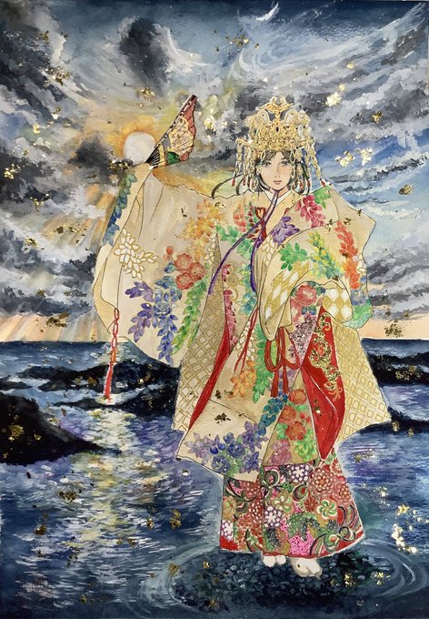 "夕浜の 天に偽り 無きものと 光条を背に すすめる一歩" 写真家M.Falkeさまの、『夕浜の輝き』に、能楽の羽衣を連想し、描かせて頂きました。 羽衣には「人心には偽りがあるが、天に偽りなし」という詞があります。 Falkeさま、今回もありがとうございました。 #watercolour #illustration #短歌 twitter.com/MFalke8/status…