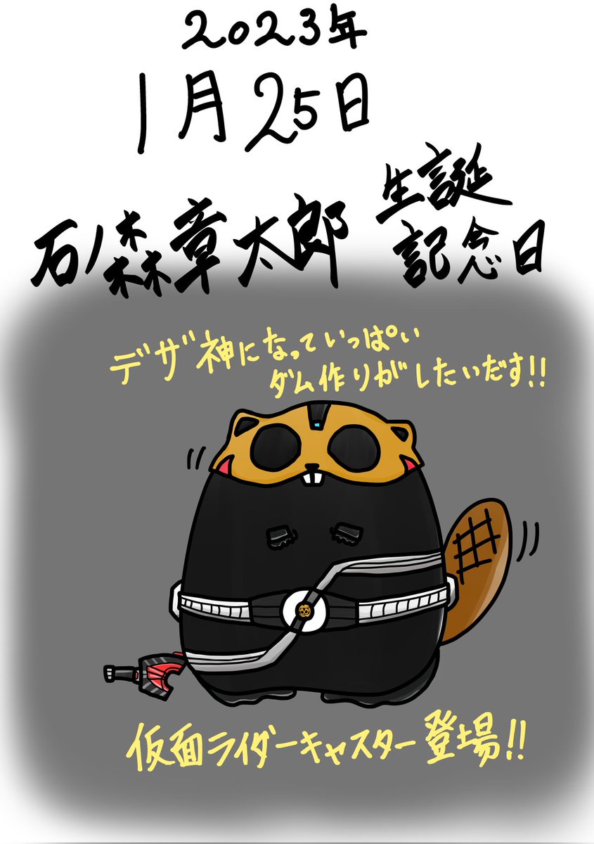 #何の日ビーバー 139日目🦫 1月25日は #石ノ森章太郎生誕記念日 ✋ 今年の仮面ライダーギーツがすっごい面白くて毎週楽しみにしています 私の推しはバッファです🐂ゾンビー🧟♀️ ちなみにキャスターとはビーバー科という意味🦫フムフム #絵柄好みって人にフォローされたい #絵描きさんと繫がりたい