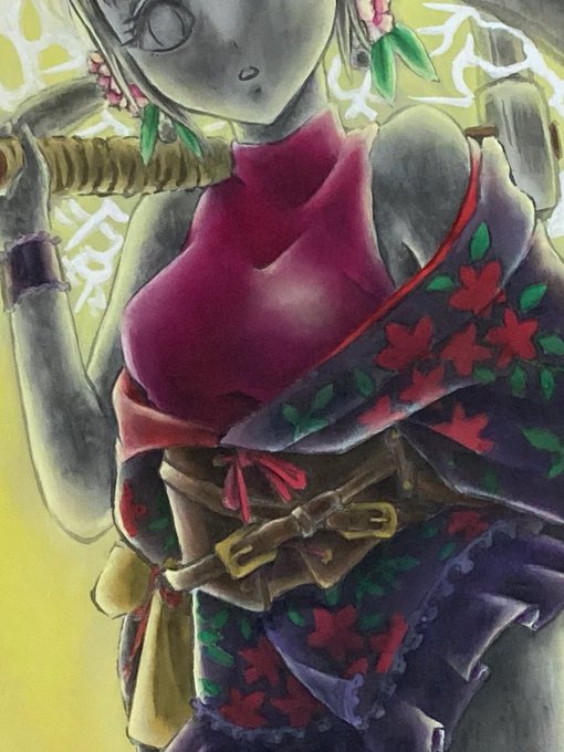 #七宗イラストアート展 展示作品の練習用…というか色試塗りしてたのが… 服着てないのでアレだが…思いのほかアレ(゚ω゚)なので… どうしようか…流石に展示は怒られそうだし… 需要ありそうならポスカにでもしてみるか…_(┐「ε:)_ #石化