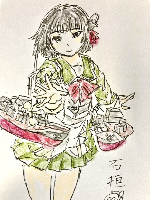 石垣ちゃんです。 当初の予定を変更しての色付け。 しかし、何だか色々と妙な具合になってしまいました #艦これ版深夜の真剣お絵描き60分一本勝負 #艦これ版真剣お絵描き60分一本勝負_20220602 #艦これ #石垣