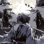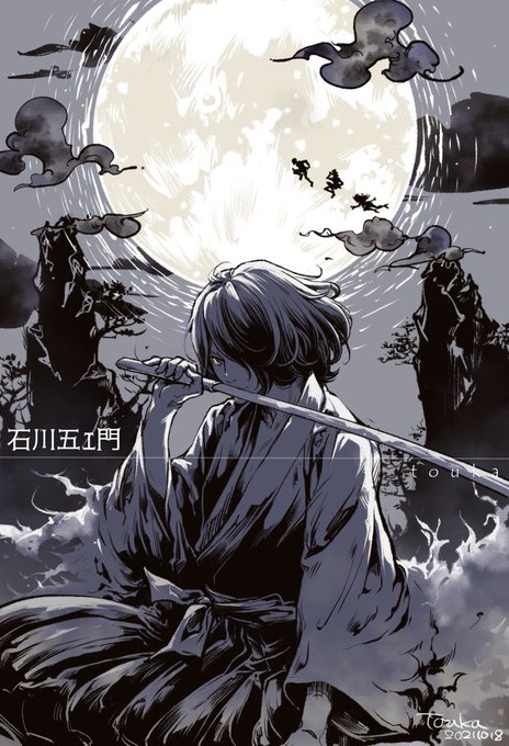 インクトーバー18日のお題「月」と石川五ェ門。 PART6、録画しているけどまだ見られていない。 #inktober #inktober2021 #ペン画 #ルパン三世 #石川五ェ門 #procreate