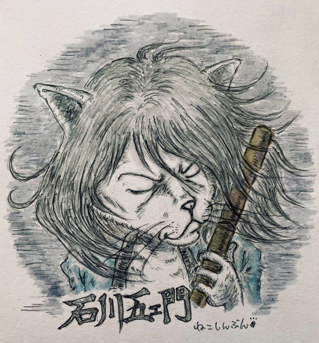 猫界のルパンの第2の相棒🎩 剣の達人、石川五ェ門 ⚔🌙 斬るのはソナタではない‥斬るのは未熟な我が心‥‥ #イラスト #アナログイラスト #ルパン三世 #石川五ェ門 #私の絵柄が好きな人にフォローされたい #みんなで楽しむTwitter展覧会 #猫イラスト