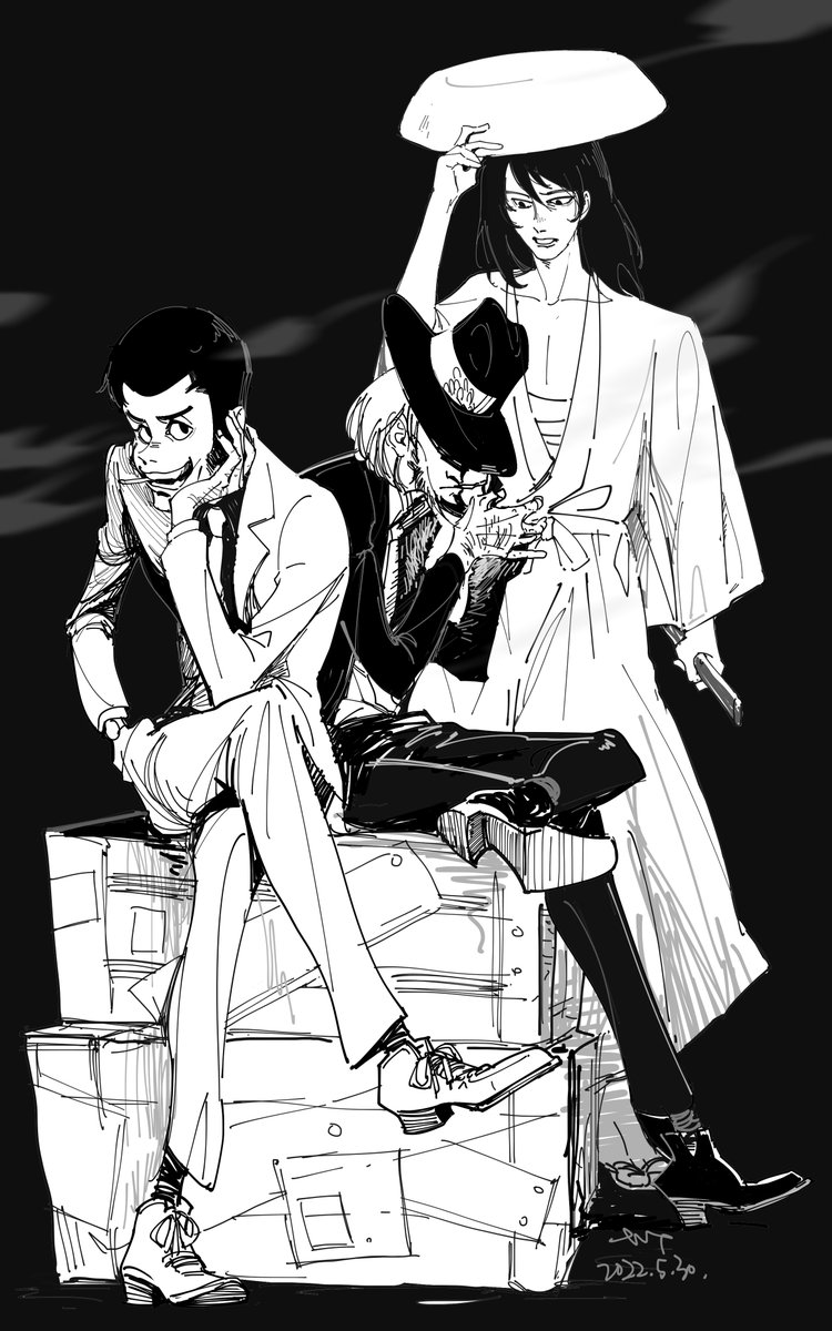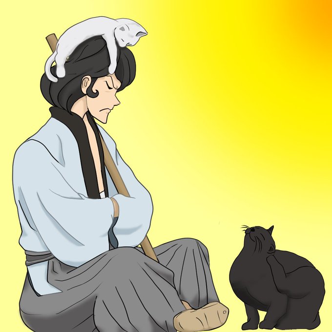 拙者、この程度で動じることは“にゃい” #ルパン絵 #石川五ェ門 #石川五ェ門イラスト #ルパン三世 #頭の上に猫 #クリップスタジオ #clipstudiopaint