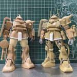#白背景でも撮ってみた カラーレシピは引用元に😭 初めての迷彩、初めての缶スプリッター(スプリンター)塗装 缶スプレーは塗膜が厚くなりがちなので、やはり『段差』が出来ちゃいますね😭 #ガンプラ #GUNPLA #HGTO #ザク #デザートタイプ #砂ザク twitter.com/Gajumaru_MUSEU…