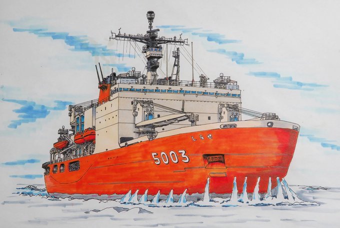 昨日から #宇宙よりも遠い場所 #よりもい の再放送ですね。 よりもいといえば第62次南極地域観測協力で砕氷艦「しらせ」とコラボしてましたね! twitter.com/jointstaffpa/s… 自分は舞鶴で「しらせ」を見学する機会がありましたが、良い艦でした✨ その際↓このイラストを寄贈 #海上自衛隊 #砕氷艦しらせ