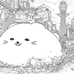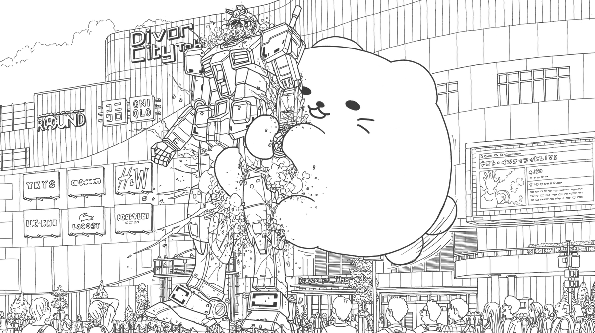 「お台場(ダイバーシティ東京付近)を破壊する猫」 の線画バージョン #イラスト好きさんと繋がりたい #絵描きさんとつながりたい #誰かの推し作家になりたい #お台場 #イラスト #ガンダム #破壊する猫 #猫 #猫好きさんと繋がりたい #ダイバーシティ東京