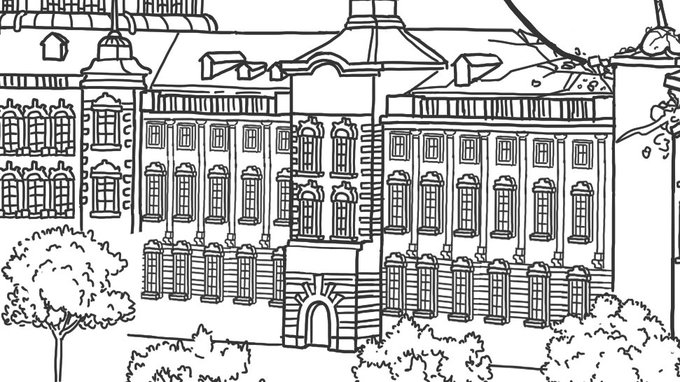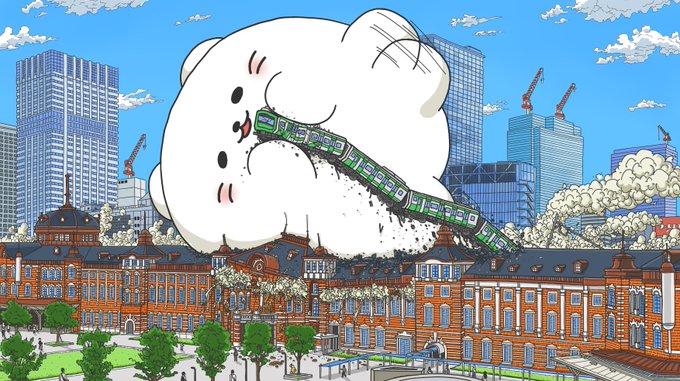 「東京駅を破壊する猫」 A cat destroying Tokyo Station #イラスト好きさんと繋がりたい #絵描きさんとつながりたい #誰かの推し作家になりたい #原宿 #みんなで楽しむTwitter展覧会 #破壊する猫 #猫 #猫好きさんと繋がりたい #東京駅 #TokyoStation