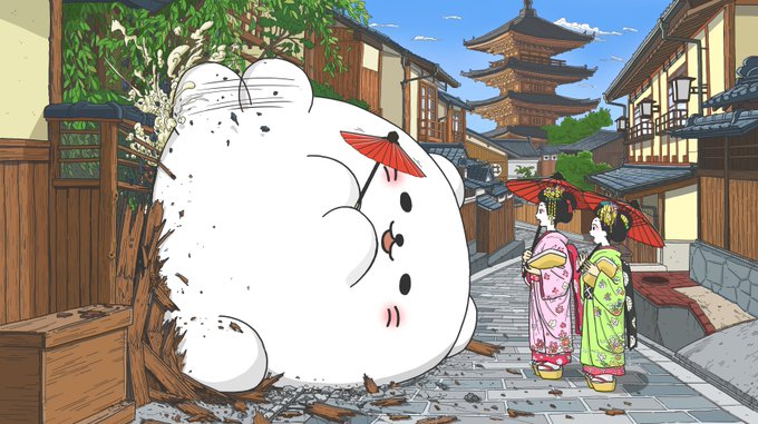 「京都祇園を破壊する猫」 A cat destroying Kyoto Gion #イラスト好きさんと繋がりたい #絵描きさんとつながりたい #誰かの推し作家になりたい #kyoto #京都 #みんなで楽しむTwitter展覧会 #破壊する猫 #猫 #猫好きさんと繋がりたい #祇園 #gion #舞子