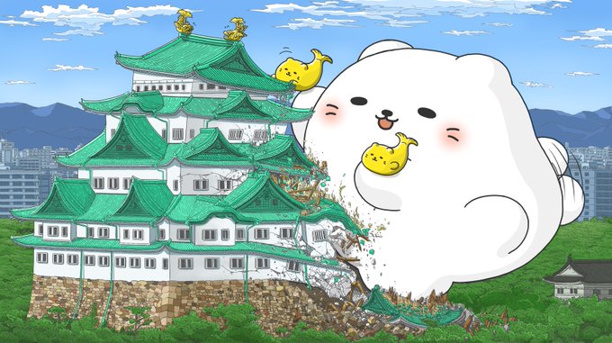 「名古屋城を破壊する猫」 A cat destroying Nagoya Castle #イラスト好きさんと繋がりたい #絵描きさんとつながりたい #誰かの推し作家になりたい #名古屋 #みんなで楽しむTwitter展覧会 #破壊する猫 #猫 #猫好きさんと繋がりたい #名古屋城 #nagoya