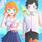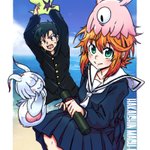 #破壊神マグちゃん混沌芸術祭 手繋ぎマグちゃん流々ちゃん。 (以前プレゼント応募の時ハガキに描いたイラストをリメイクしてみました) このふたり、関係が一方的でなく対等で、お互い影響しあってるところが大好きです。唯一無二の相棒感!
