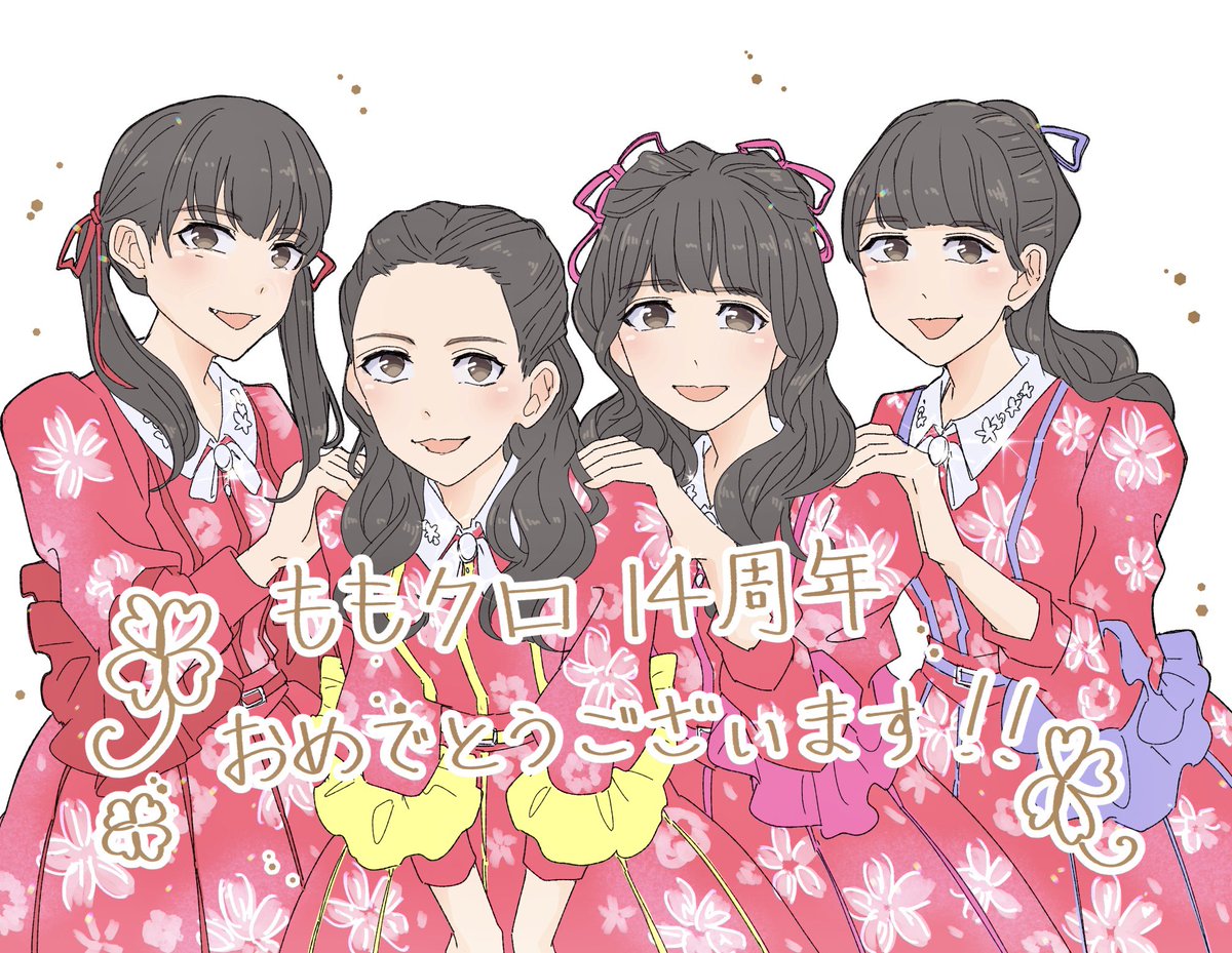 ももクロちゃんに出会えて、同じ時代に生まれてこれて幸せです💗❤️💛💜 おめでとうございます🎉✨ #祝ももクロ14周年 #ももクロ結成14周年 #ももクロ14周年の祝典 #momoclo_fanart