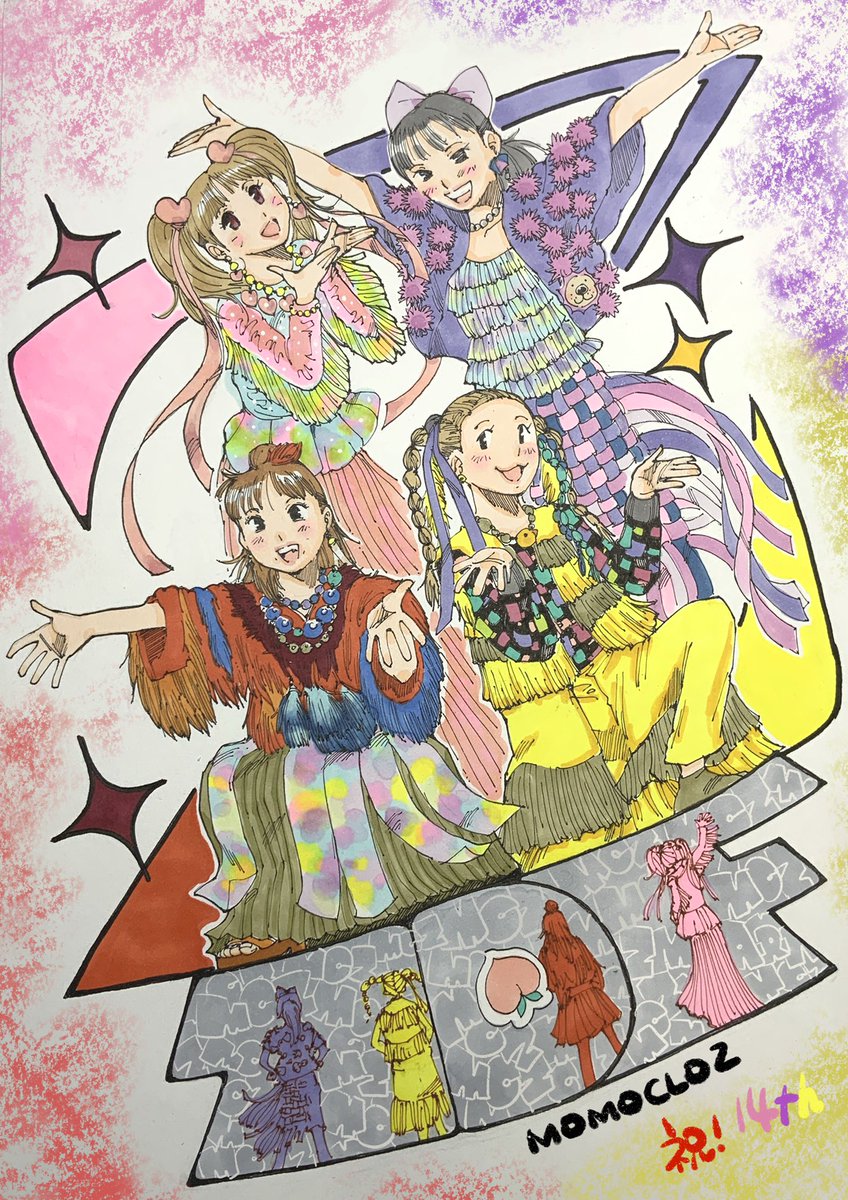 ももクロちゃん14周年おめでとうございます。こんなに長い間幸せを与えてくれて正に奇跡のようなグループだと思います。そしてまだまだ進化してる事を感じさせてくれるツアー。これからもますます楽しみにしています! #ももクロ14周年の祝典 #祝ももクロ14周年 #momoclo #momoclo_fanart