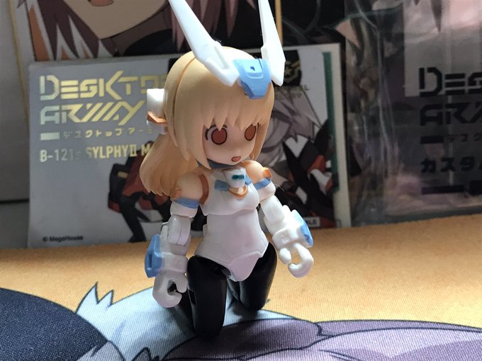 【今朝の #轟雷 】 #フレームアームズガール #デスクトップアーミー #祝アニメFAガール5周年 「早く武装を組み立てて下さい、あお。」 …記念すべきアニメ第一話、轟雷 x あおの初めての出会いのシーンをDTA轟雷で再現。(笑)
