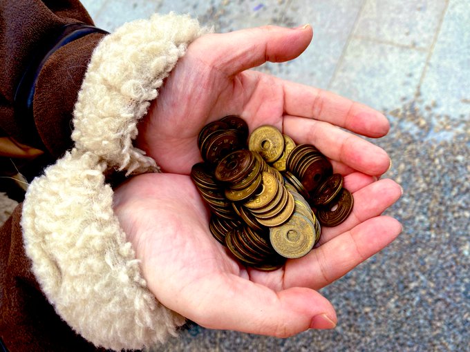 ⛩ 神様のえこひいき ⛩ ドラマヒット祈願! 連載開始時に両替した100日分の5円玉を全部お賽銭として投入してきました!!! #神様のえこひいき #神えこ twitter.com/komura_ayumi/s…