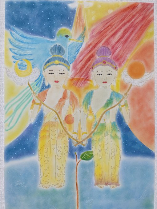 【ヴィシュヌ神✨】 ヒンドゥー教の最高神である三大神の一つ。 世界維持の神とされる。 あまねくものを照らす働きをする太陽を神格化した。 世界を維持し、悪魔を滅ぼす神さま✨ #ヴィシュヌ神 #神仏 #イラスト #drawingart #ヒンドゥー #太陽 #energyart #インスピレーション #パステル