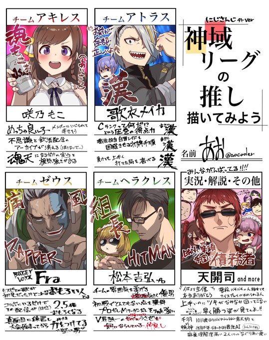 #神域リーグ 応援イラストまとめ加筆版 天元突破! #アトラスまみむめも ヘラクレスの日常 #ヘラクレスオオマツモト グラディウス桜 #グラディ推す APEX LEGENDS #ネオアキレス