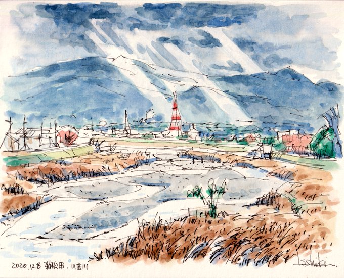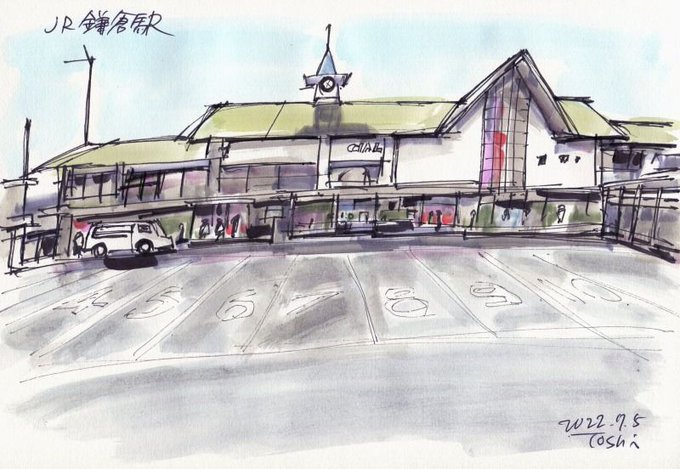 鎌倉駅から長谷へ向かう途中、江ノ電和田塚駅近くの商店を向かいの駐車場からタブレットでスケッチ。家に戻って着色しました。#鎌倉 #和田塚 #風景画 #スケッチ #鎌倉市 #神奈川県 #ペン画 #絵画 #illustration #landscapepainting #japaneselandscape #japaneselandscapepainting