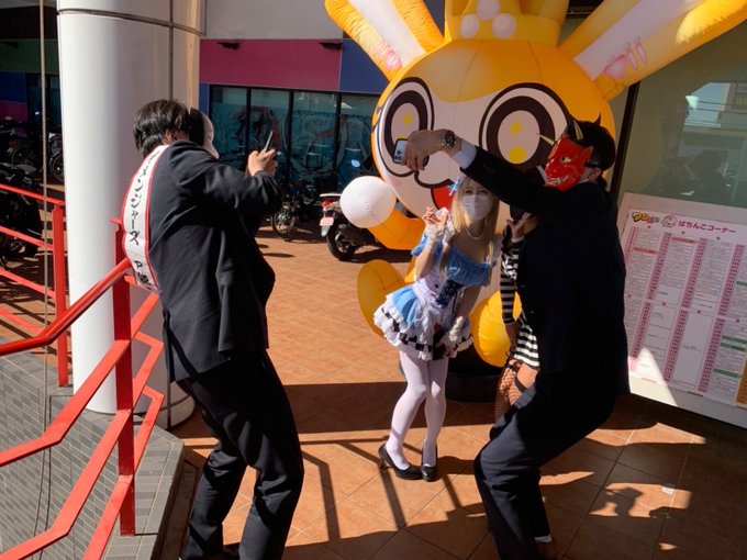 自撮りする #オメンジャーズ般若 を撮る #オメンジャーズ能面 を撮る #オメンジャーズひょっとこ #神崎りのあ さん @Rinoa_Kanzaki #大川成美 さん @NaRu_0320 #コスプレ