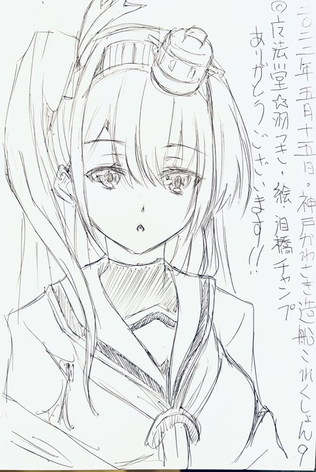 神戸かわさき9にてサークル参加しています! 現在スケブ3枚描きましたw 今スケブ描き時間空いてますw #絵描きさんと仲良くなりたい #絵描きさんと繋がりたい #神戸かわさき9 #艦これ #冬月 #川内 #隼鷹