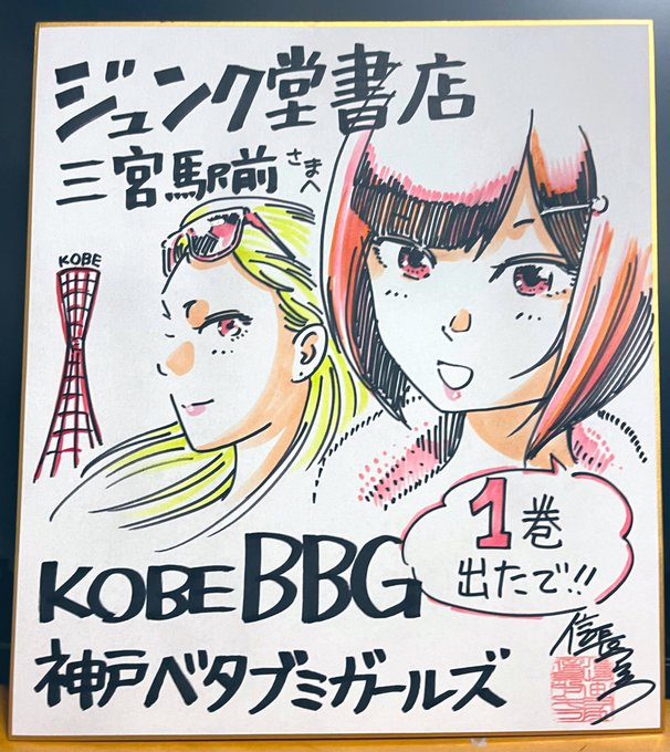 ジュンク堂書店三宮駅前さまに 色紙を描かせて頂きました。 お近くの方はお立ち寄り くださいませ(^^) #神戸ベタブミガールズ #KOBEBBG #第1巻発売中 @3ekimae_junkudo