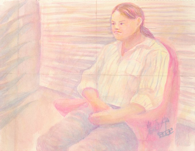 #人物 #3原色 #水彩 「美術室のモデル」 作者: #岩崎ナギ #神戸市立西区文化センター 講座用、昨年デッサンを水彩しました #Portrait #3primarycolors #watercolor Title: "Model in #Art Room" #Artist: #Nagi for Kobe Japan Lecture. I watercolored my last year's drawing.