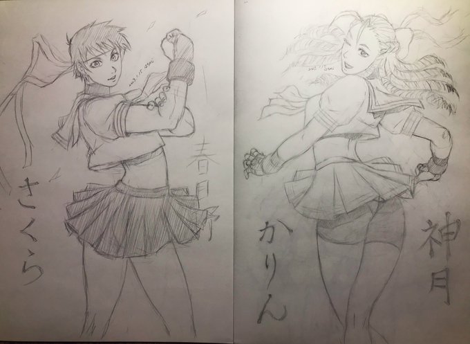 #ストリートファイターZERO #ストリートファイターシリーズ #格ゲーキャラ描こうぜ #神月かりん #春日野さくら 調子に乗って今日一日 時間を見つけては描いてました いつかタブレットで描ける環境になったらカラーにしたいなといつも思っています 後で単体でもアップします