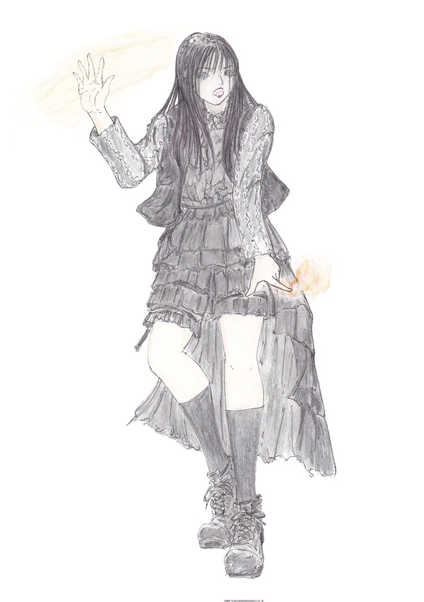 #あまち 描いた(2枚目) #神奏曲インフェルノ 意識して手を発火させてみた #🔥 #神激 #神使轟く激情の如く #涙染あまね さん #神激イラスト #神者 #神者の輪 #イラスト好きな人と繋がりたい #アトリエの系譜 #みんなで楽しむTwitter展覧会 #絵描きの輪 ①がpcアプリで加工③が原画